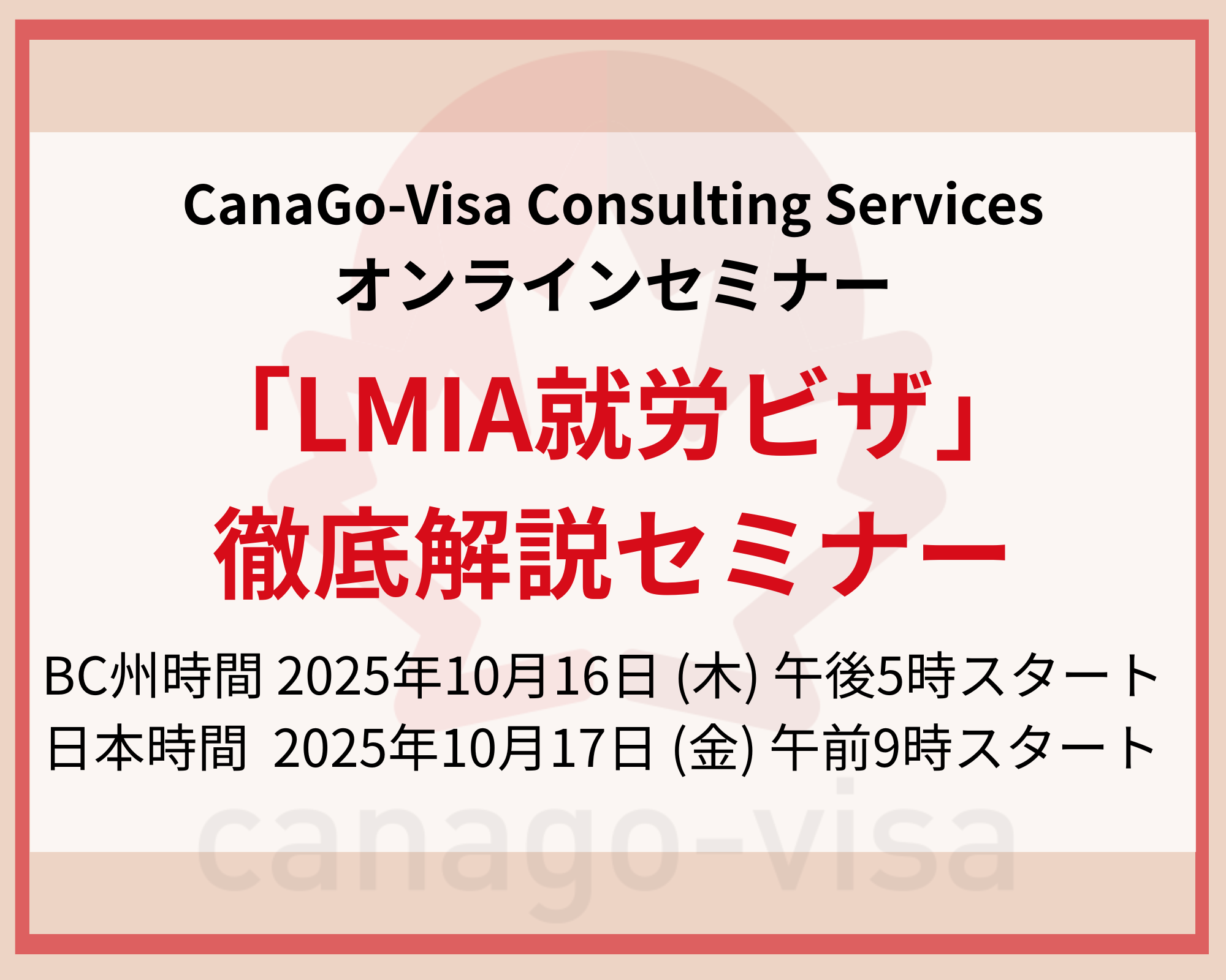 📢 無料オンラインセミナー開催! 「LMIA就労ビザ最新情報」徹底解説セミナー 「もう少しカナダで働きたいけど、LMIA申請は今できるの?」「今の職場でワークサポートを受ける予定だけど、ルール変更が不安」 […] -