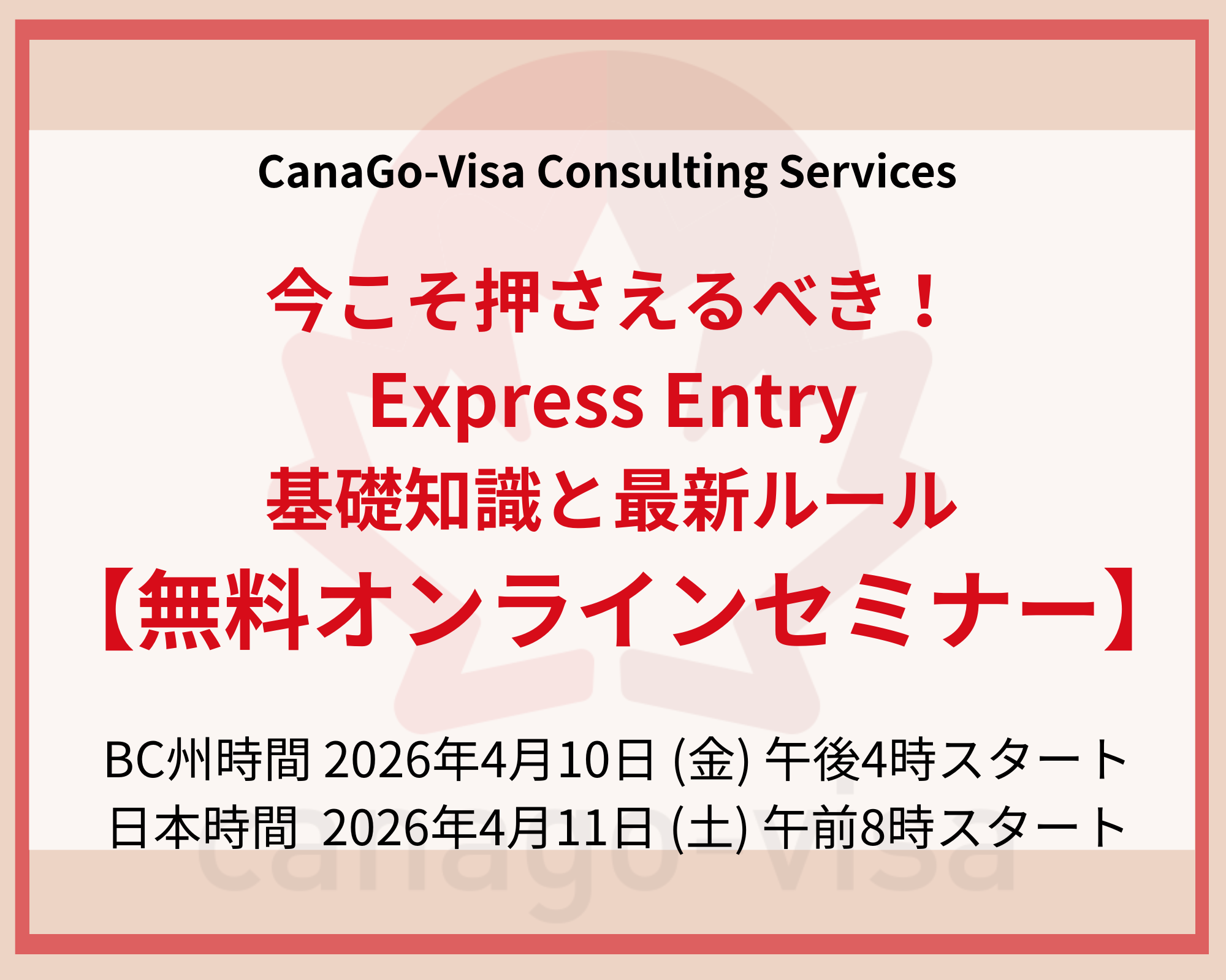 【今こそ押さえるべき!Express Entry基礎知識と最新ルール】無料オンラインセミナーのご案内
